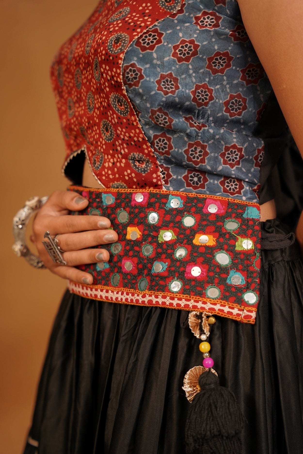 Pair this Ajrakh top with high-waisted jeans, a flowing skirt, or traditional palazzos for a stunning ensemble that celebrates both modern and traditional aesthetics. Perfect for festive occasions, casual outings, or cultural events, this top is a statement piece that showcases your appreciation for artisanal craftsmanship and timeless style. Embrace the beauty of tradition while making a bold fashion statement with this elegant and versatile garment."
