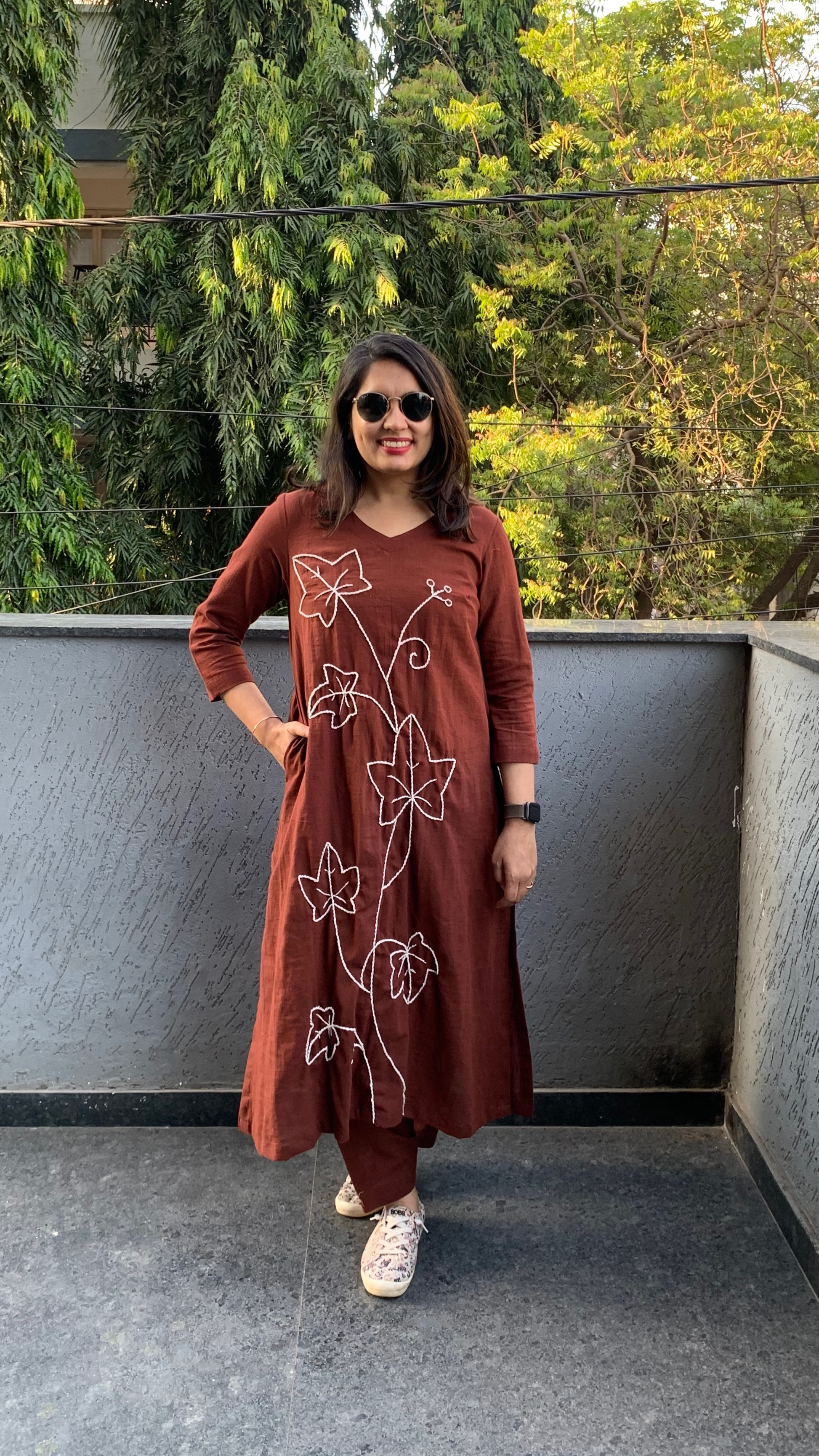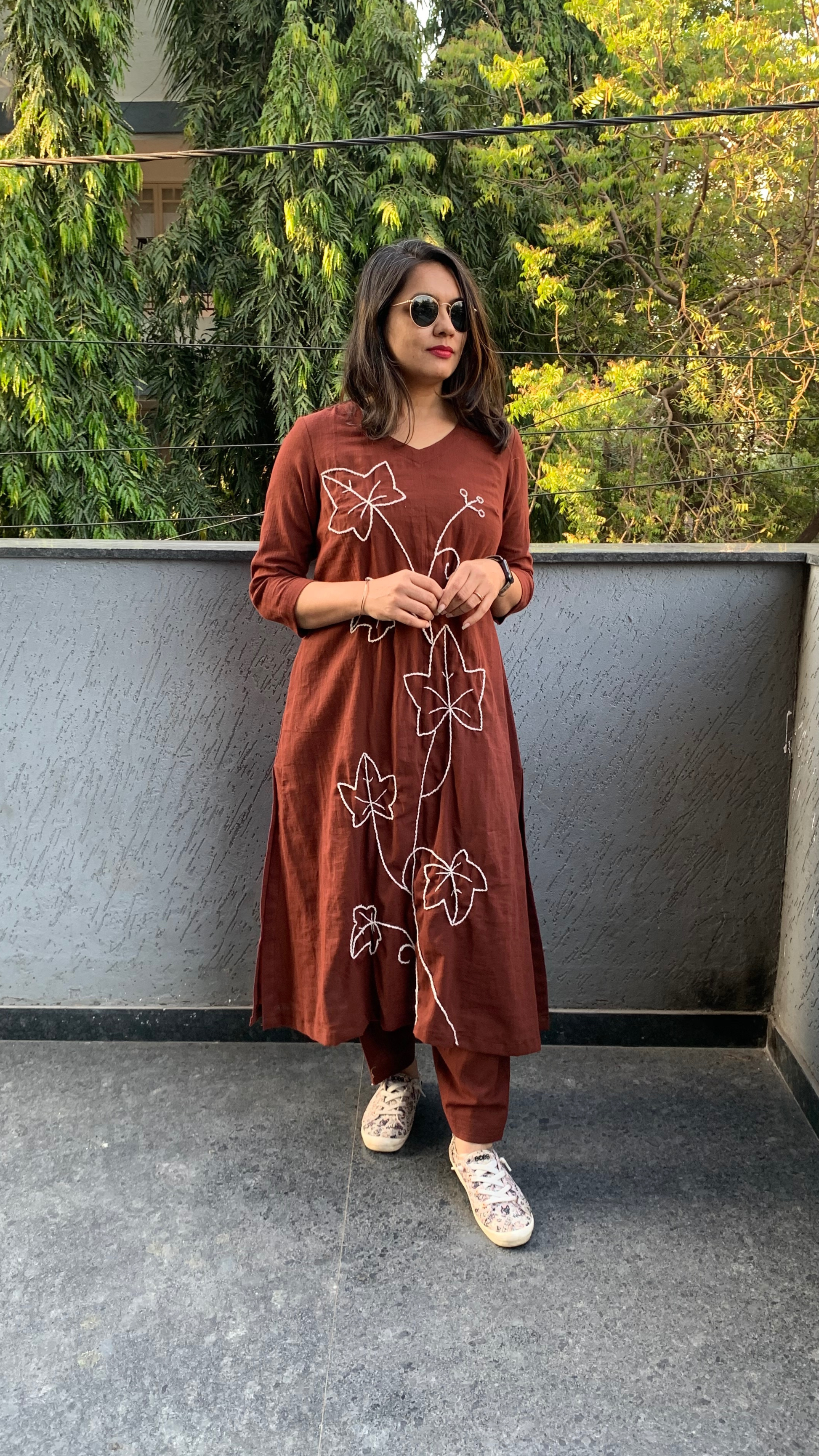 Bring effortless elegance into your everyday style with this beautifully crafted 2-piece co-ord set. Made from soft, breathable cotton slub, the outfit features delicate hand embroidery that adds a touch of charm to your look. The kurta comes with a functional side pocket, while the salwar is designed with a comfortable elasticated waistband for day-long ease.