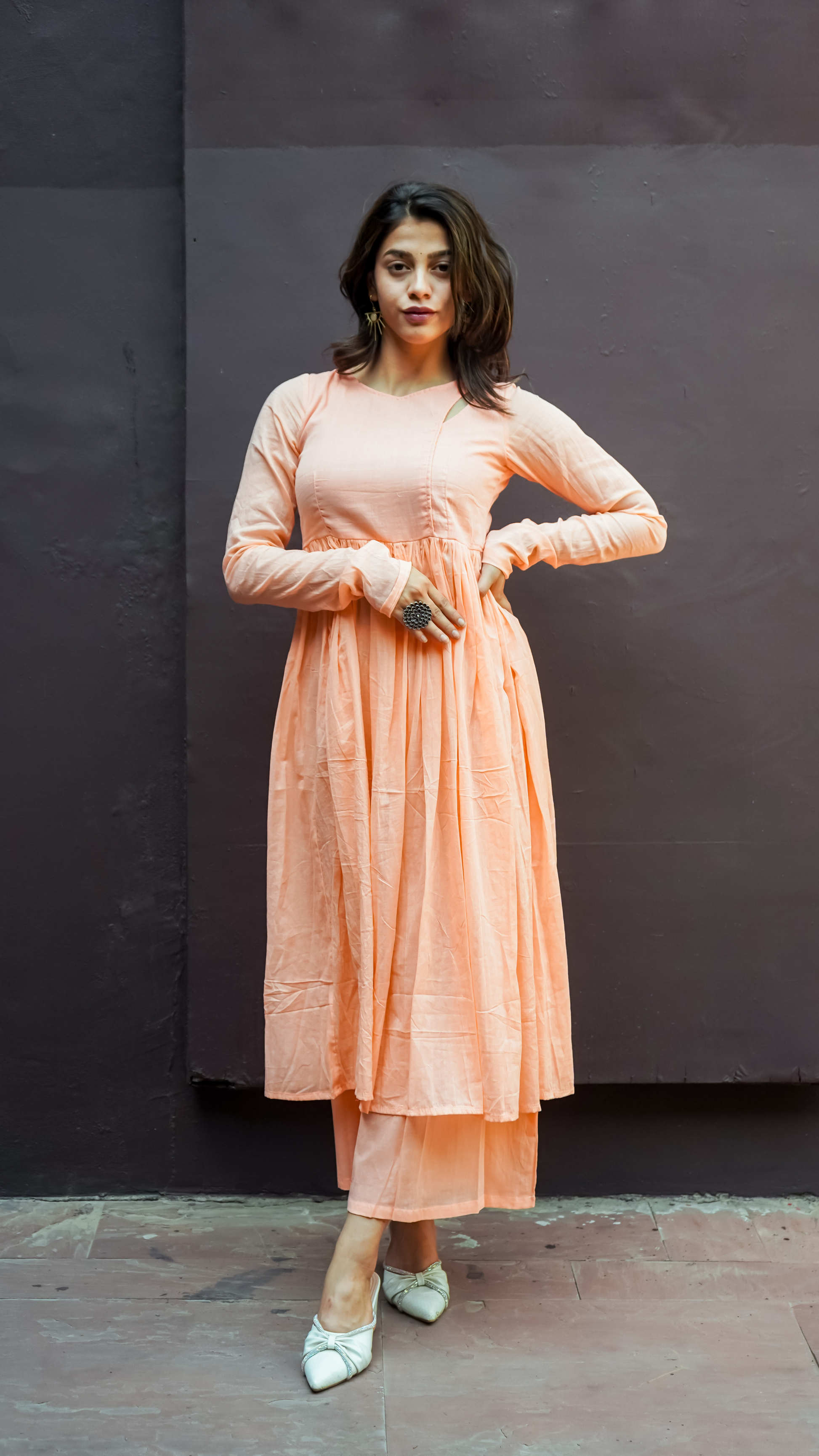"Indulge in timeless elegance with our exquisite Angrakha set, meticulously tailored for summer weddings or intimate gatherings. Crafted from luxurious pure MUL cotton fabric, this ensemble exudes grace and sophistication. The Angrakha top features chic churidar sleeves, while the flared palazzo adds a touch of modern flair. Radiate charm and poise on any occasion with this stunning ensemble, perfect for making a memorable statement."