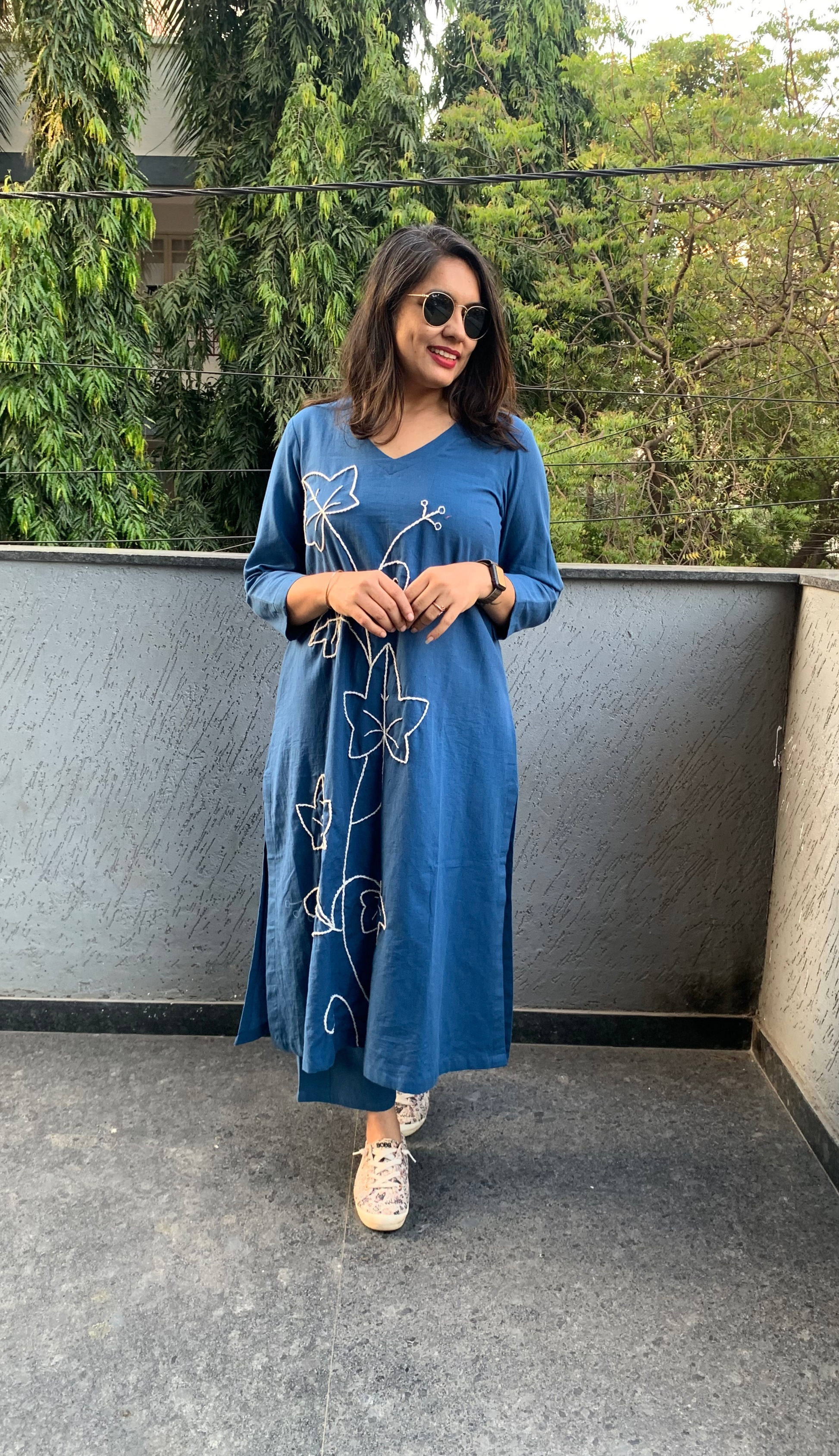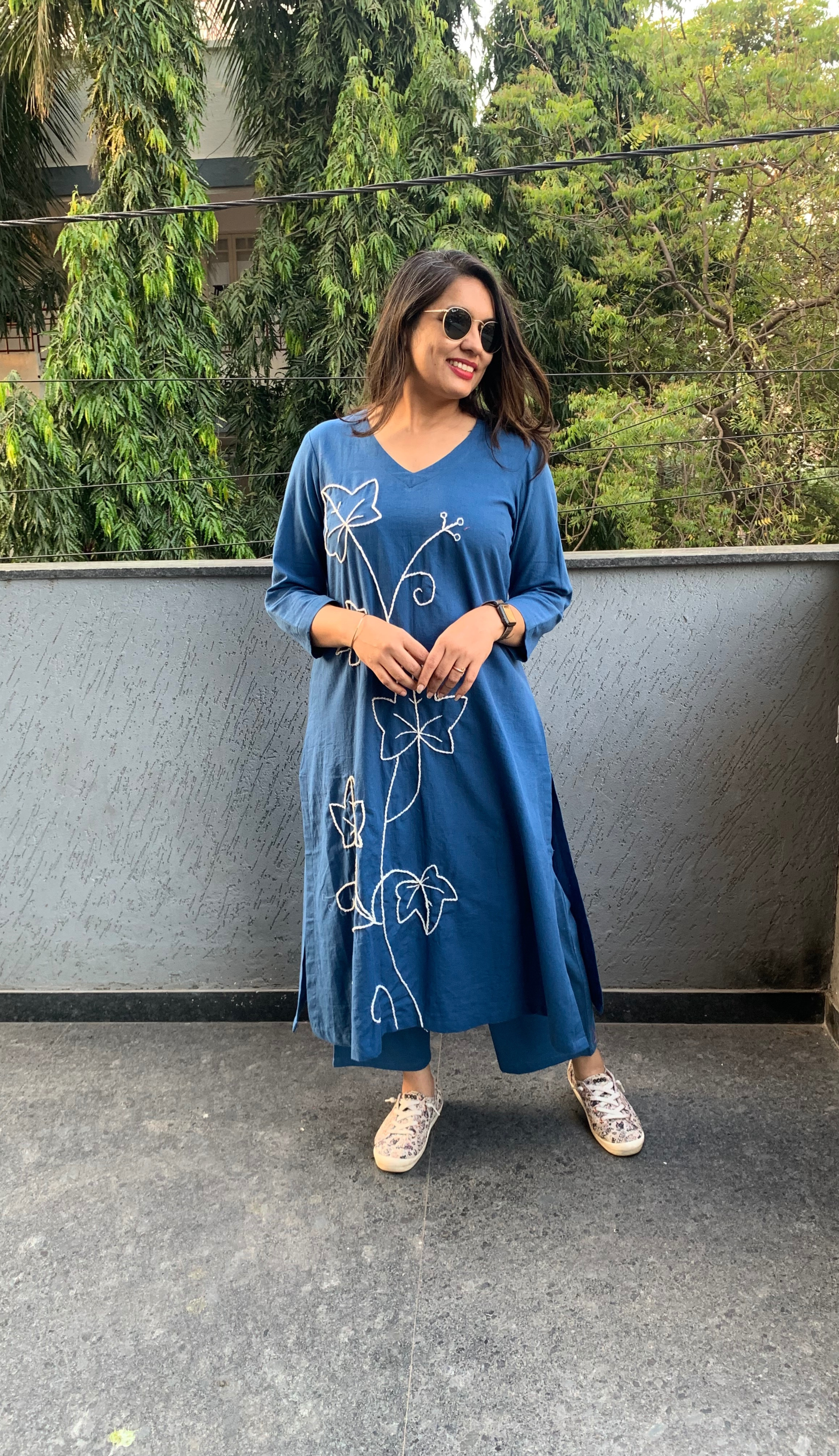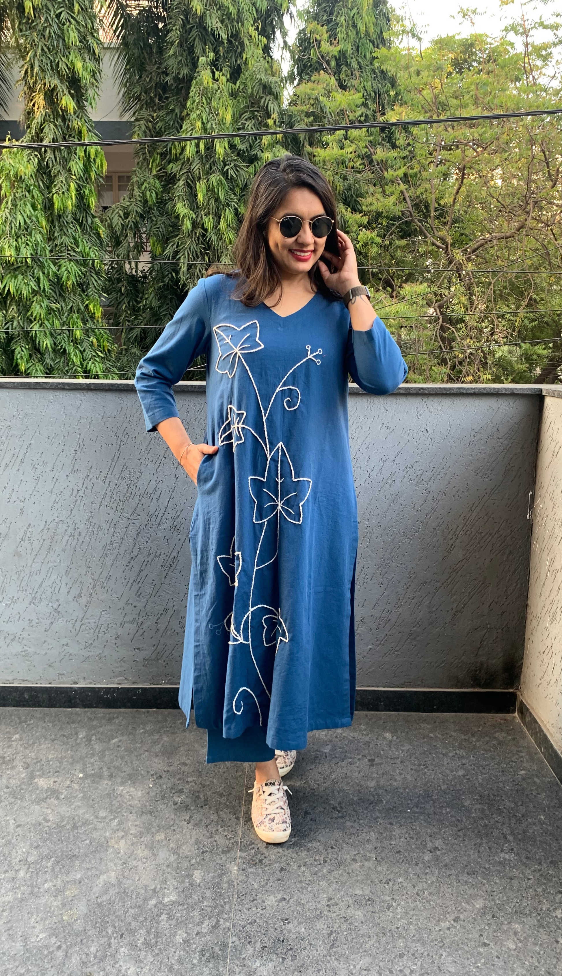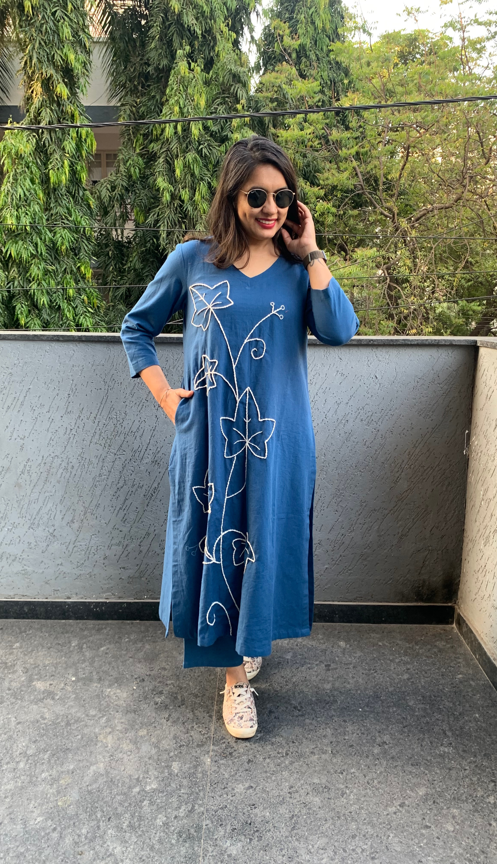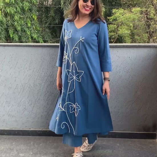 Bring effortless elegance into your everyday style with this beautifully crafted 2-piece co-ord set. Made from soft, breathable cotton slub, the outfit features delicate hand embroidery that adds a touch of charm to your look. The kurta comes with a functional side pocket, while the salwar is designed with a comfortable elasticated waistband for day-long ease.