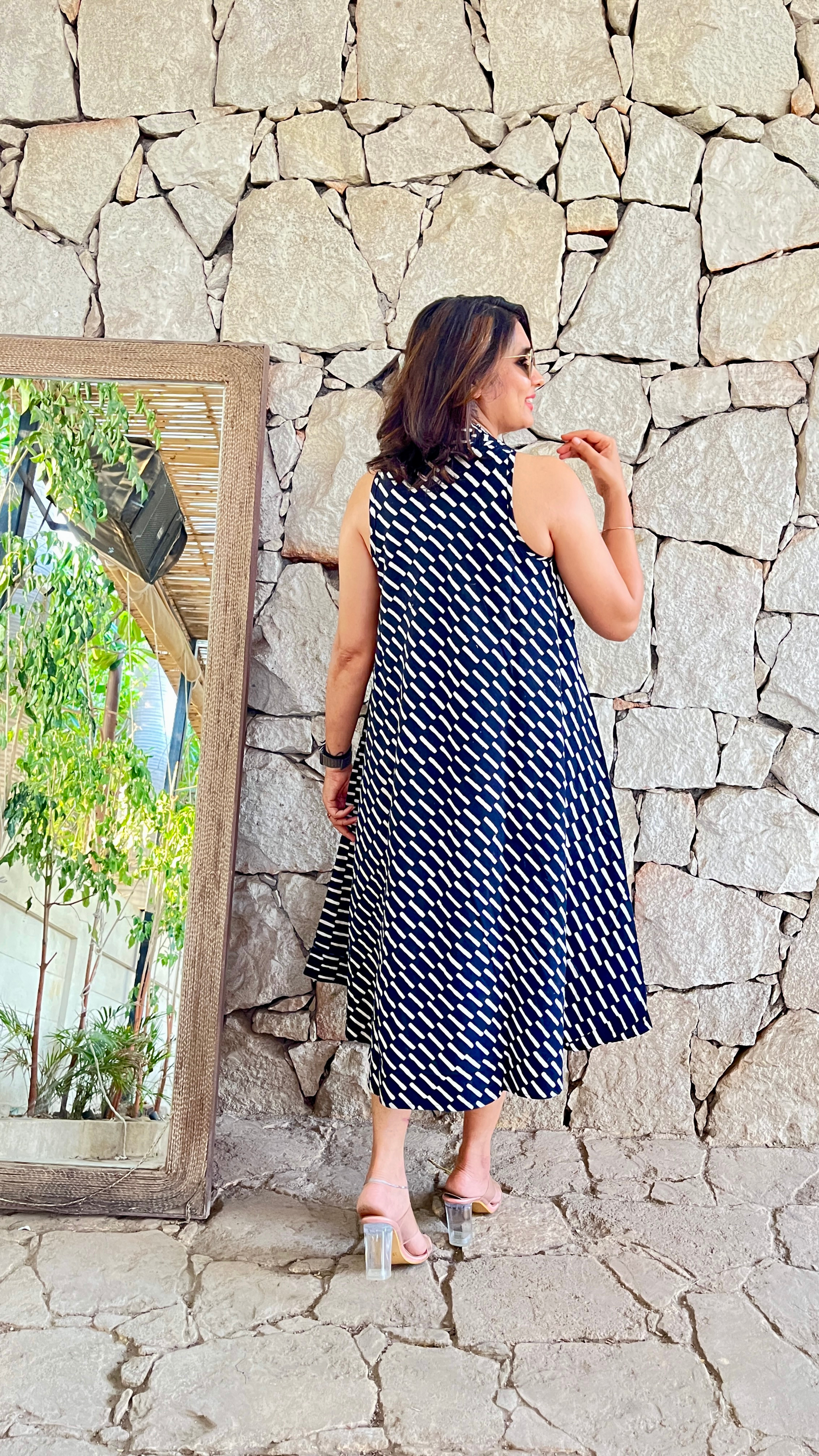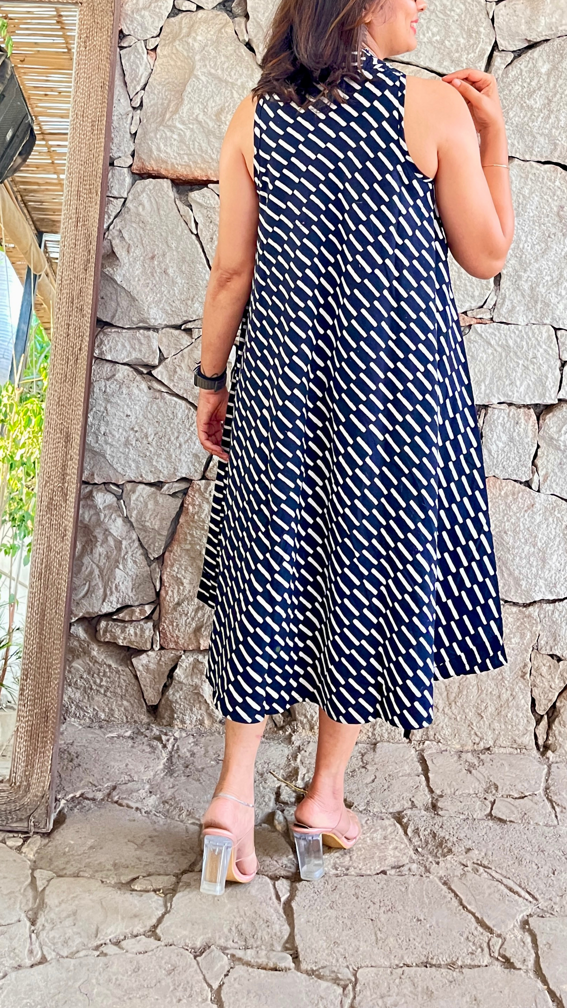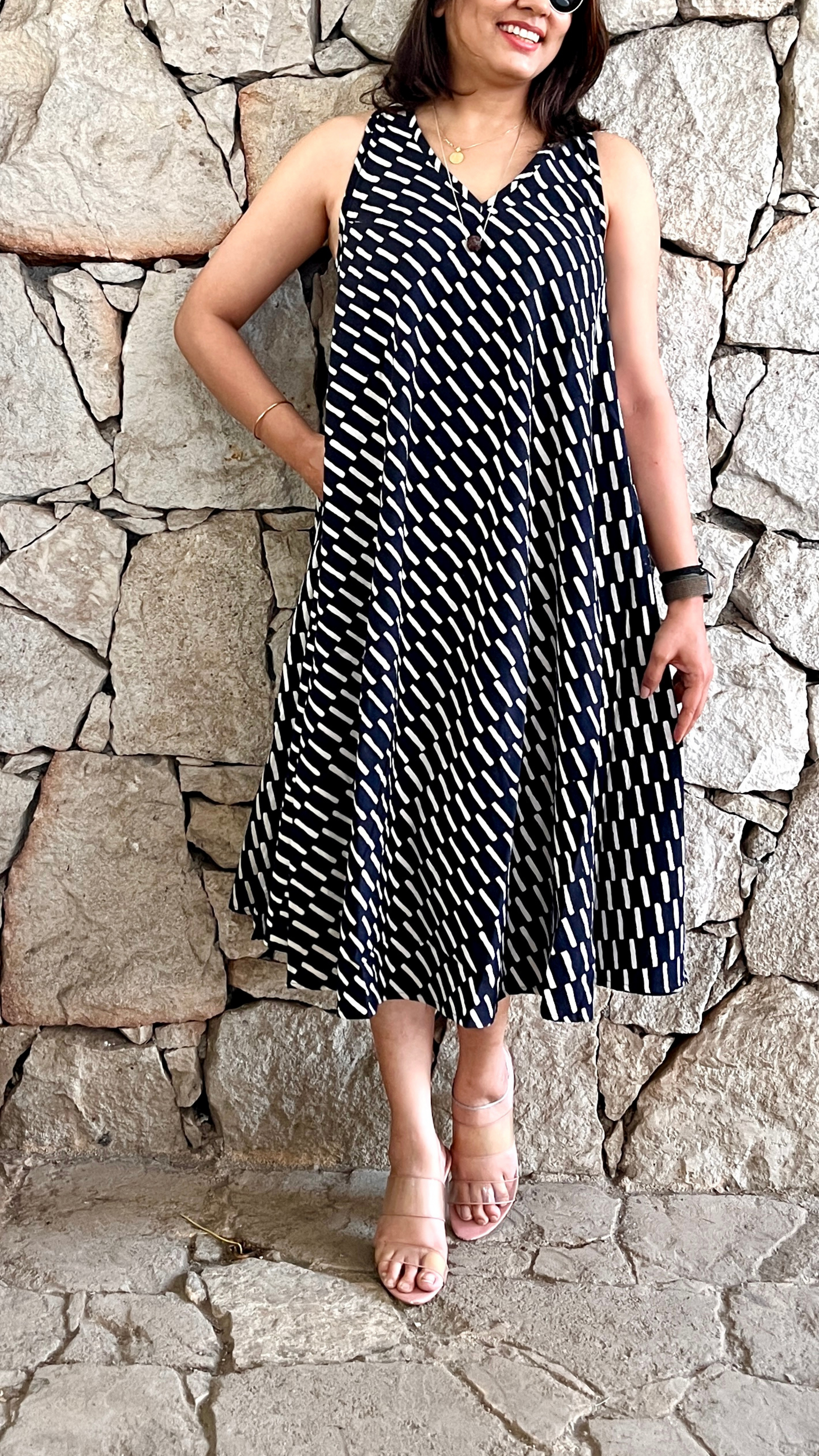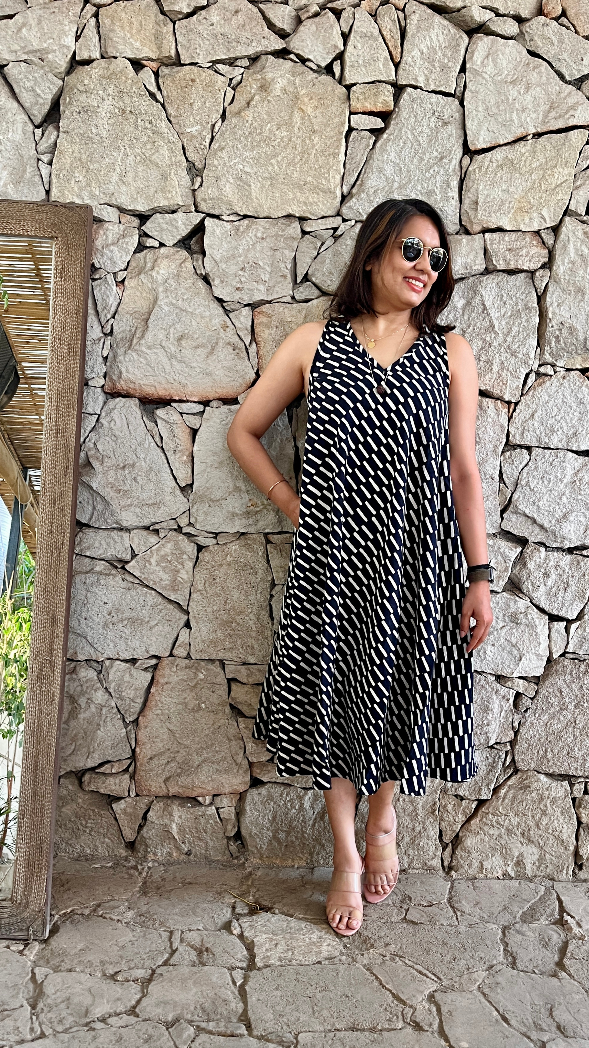 Effortlessly bold and unapologetically cool — The PixelPlay Circular Dress is your go-to statement piece for sunny days and stylish escapes. Crafted in breathable, lightweight 100% cotton fabric, it features an all-over monochrome dash print that blends graphic edge with minimalist vibes. The flowy A-line cut flatters every body type, while side pockets add a practical touch to its playful swing.