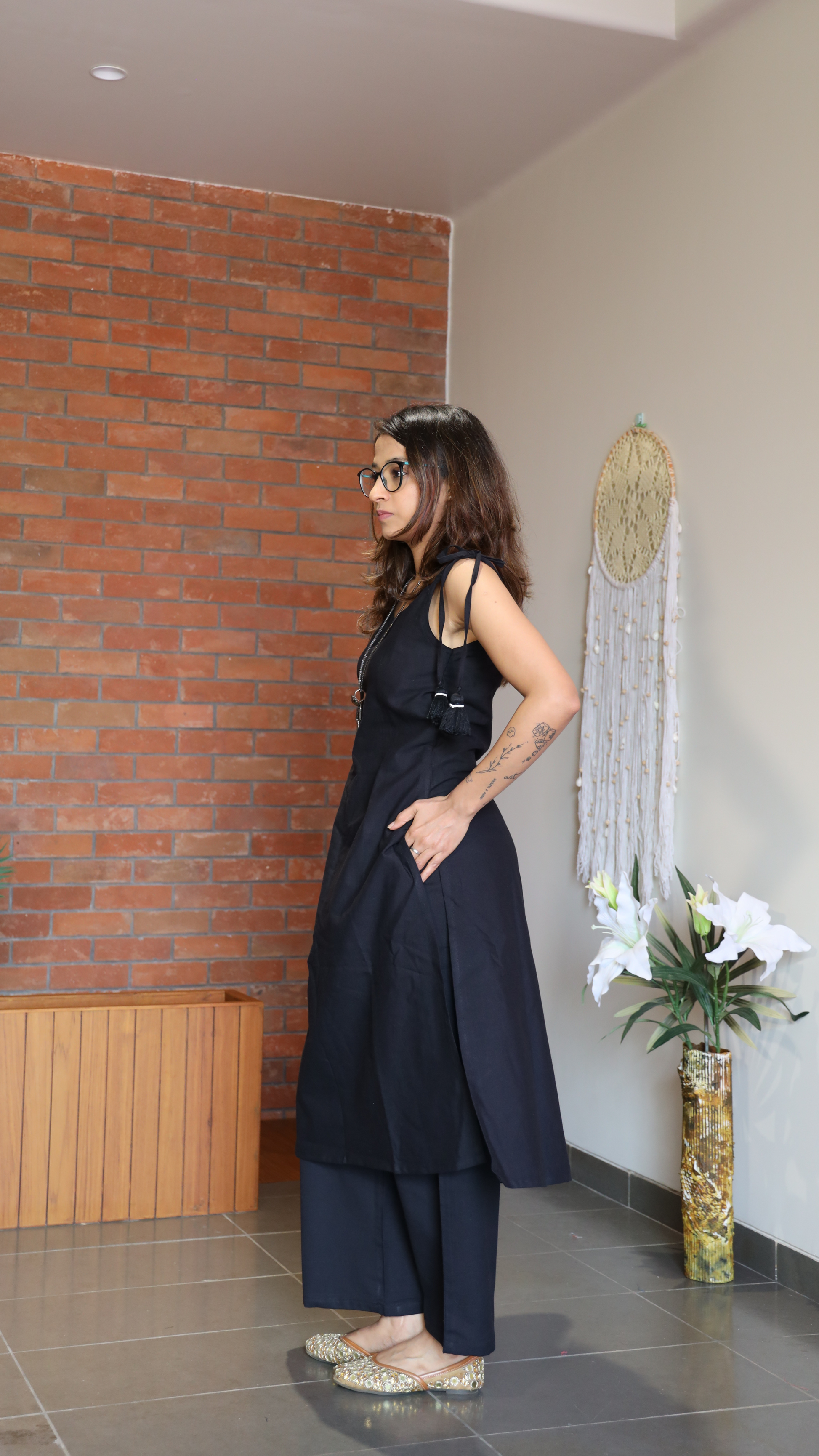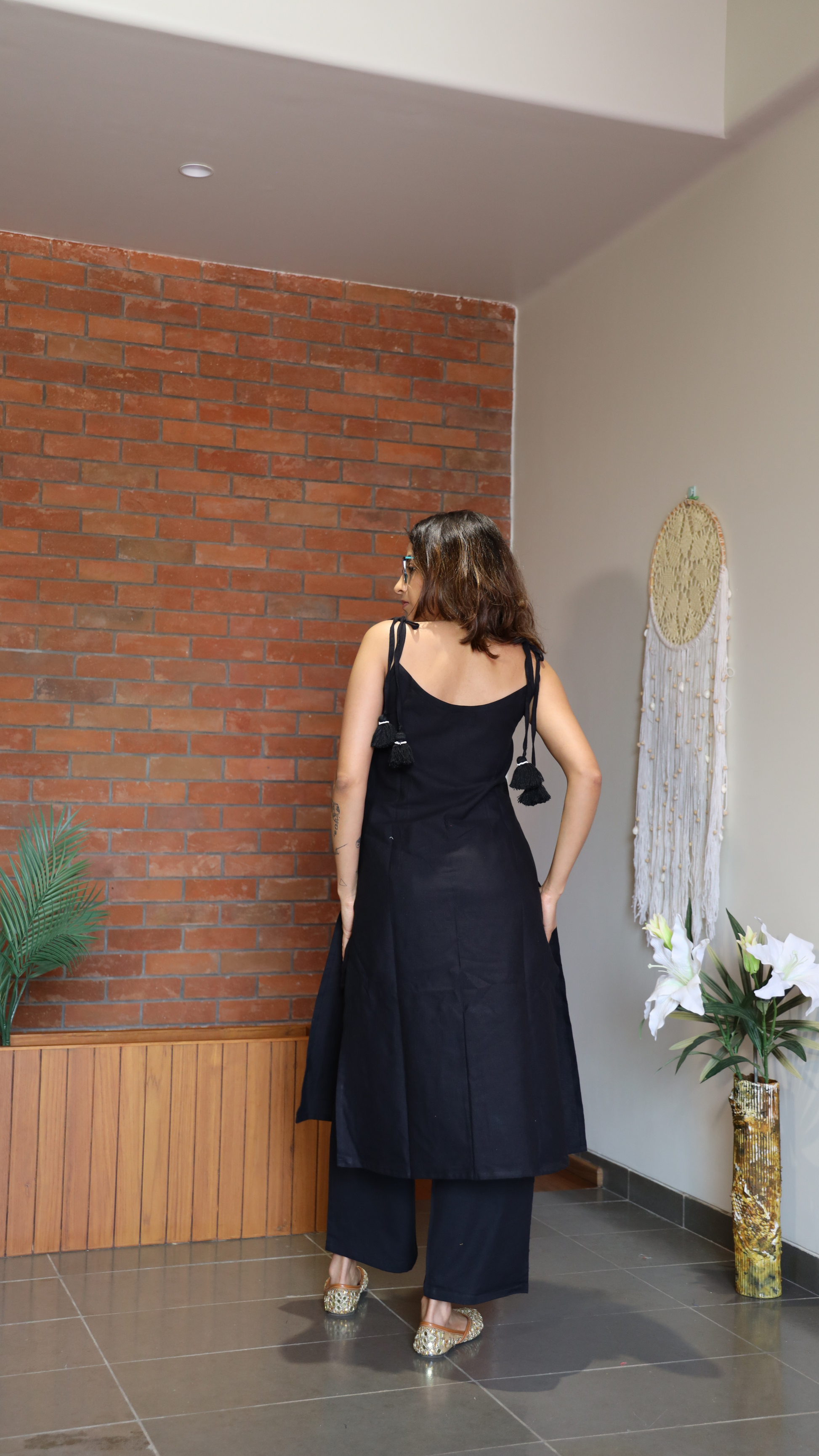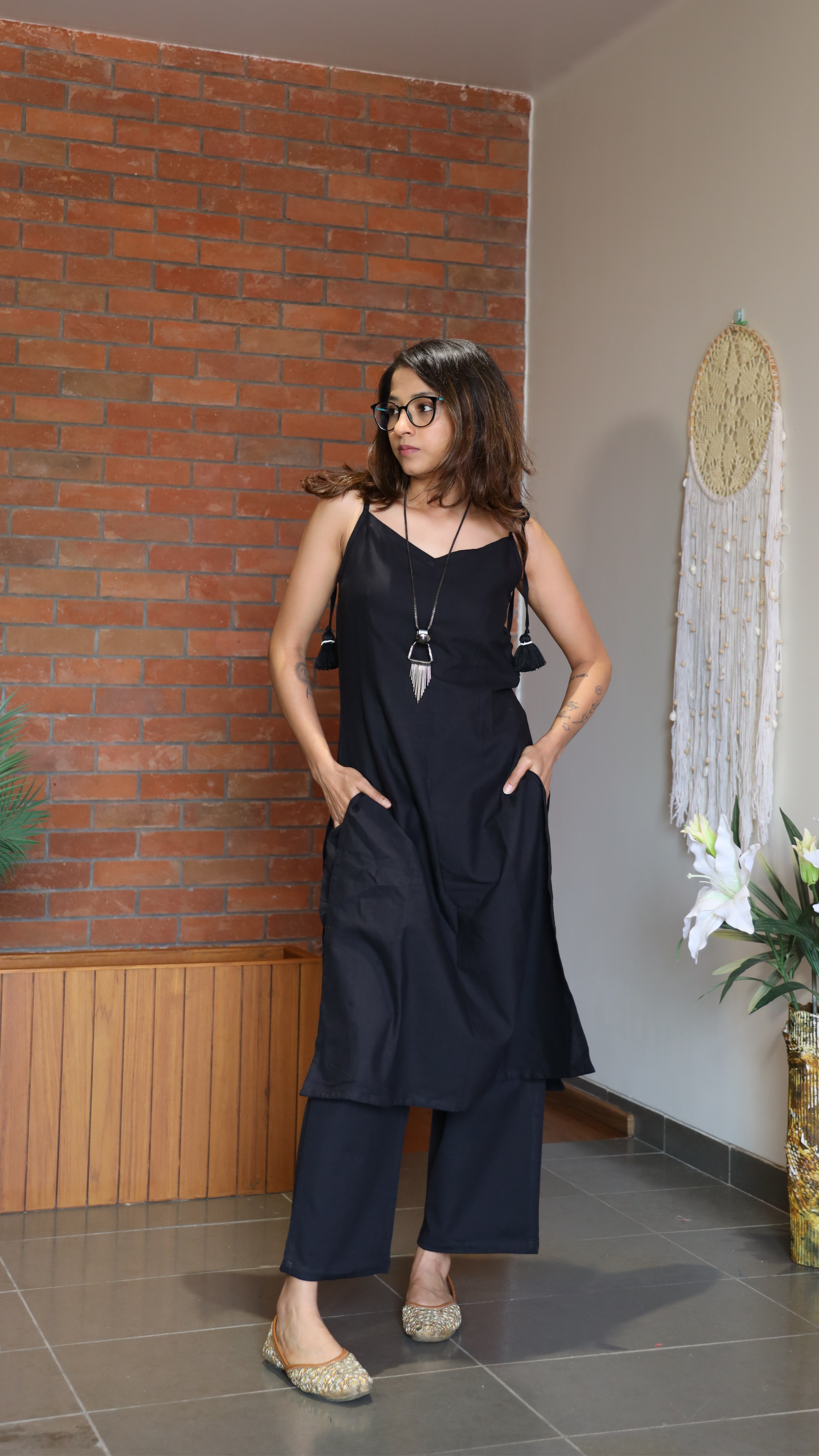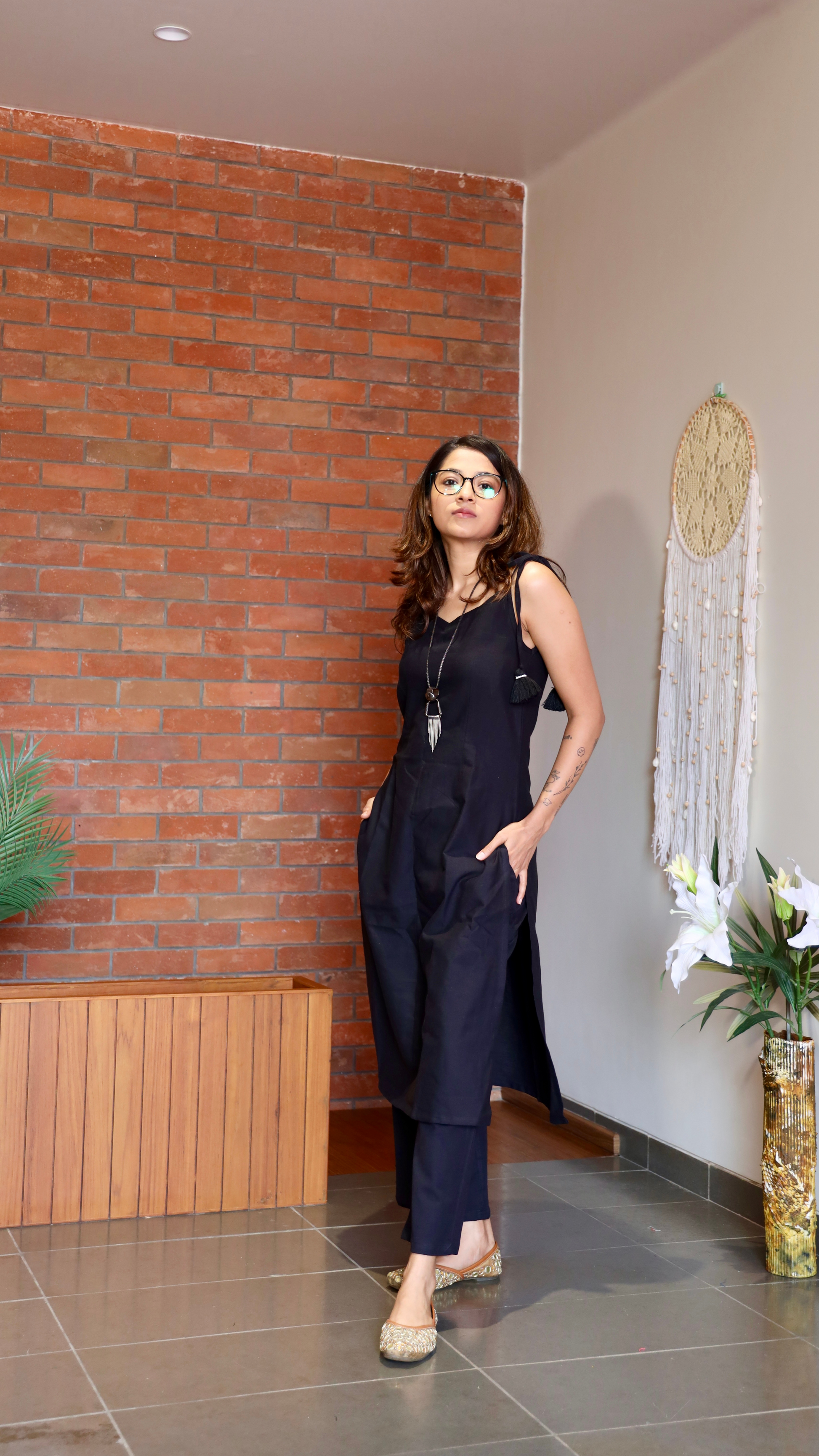 Classic. Confident. Uncomplicated. The Forever Black Co-ord Set is that wardrobe essential you never knew you needed — until now. It’s the kind of black that goes with everything, yet feels like nothing else. With an effortlessly modern silhouette and statement tassel ties, it’s your go-to for all moods — when you’re feeling lowkey or all eyes on me.