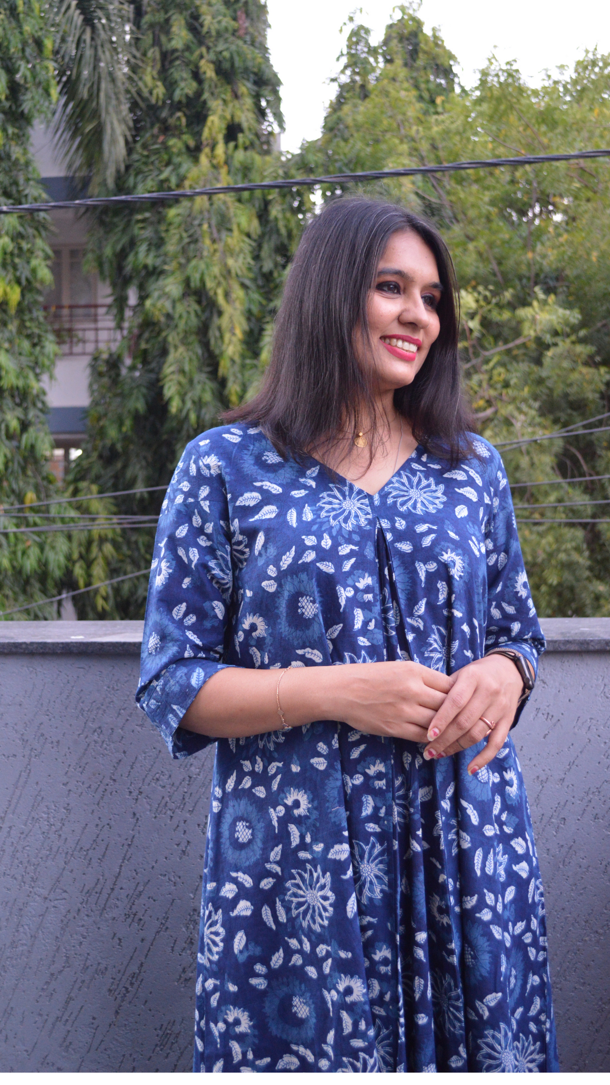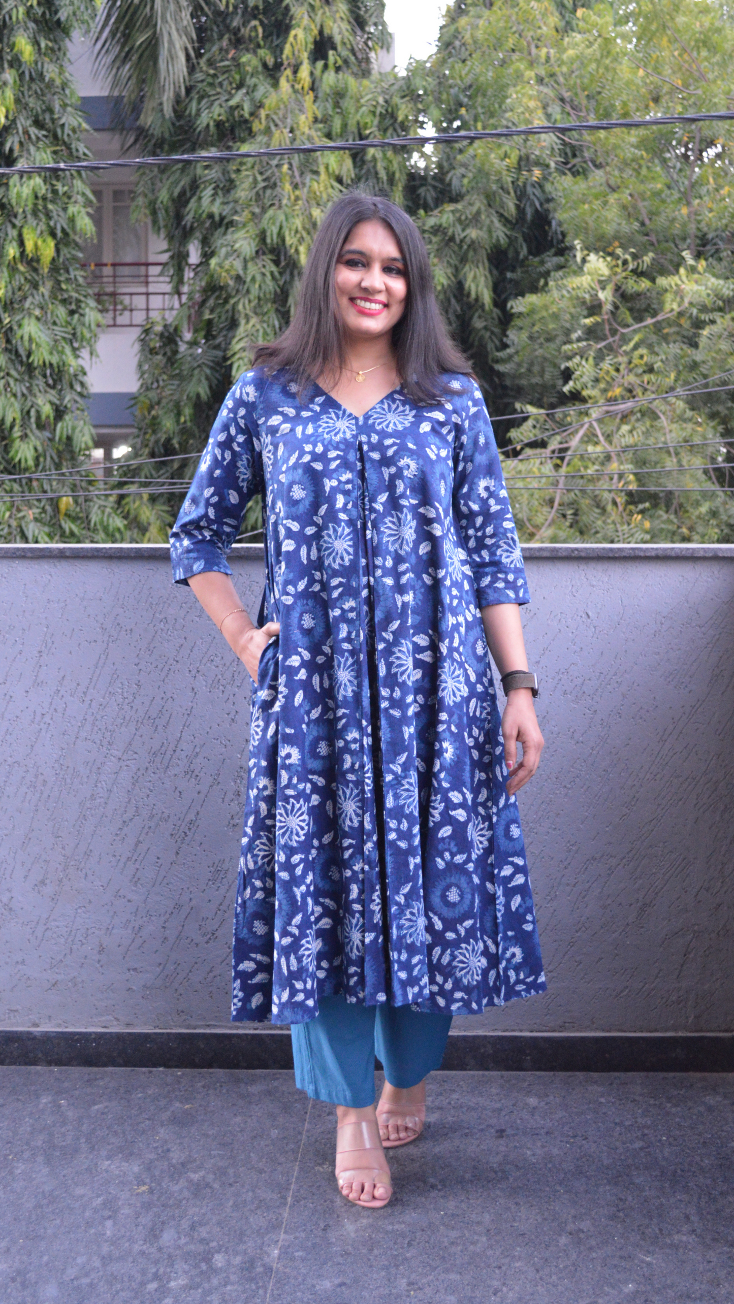 This indigo Kalamkari Kurta and Pant Set is the perfect fusion of timeless style, comfort, and versatility, designed to seamlessly elevate your professional and everyday wardrobe. Made from pure cotton, the fabric is soft, breathable, and ideal for all-day wear, ensuring comfort whether you're at the office or enjoying your day off. The set features intricate handblock prints inspired by traditional Kalamkari art, with rich indigo hues and detailed patterns that add an artistic and elegant touch to the ensemble.