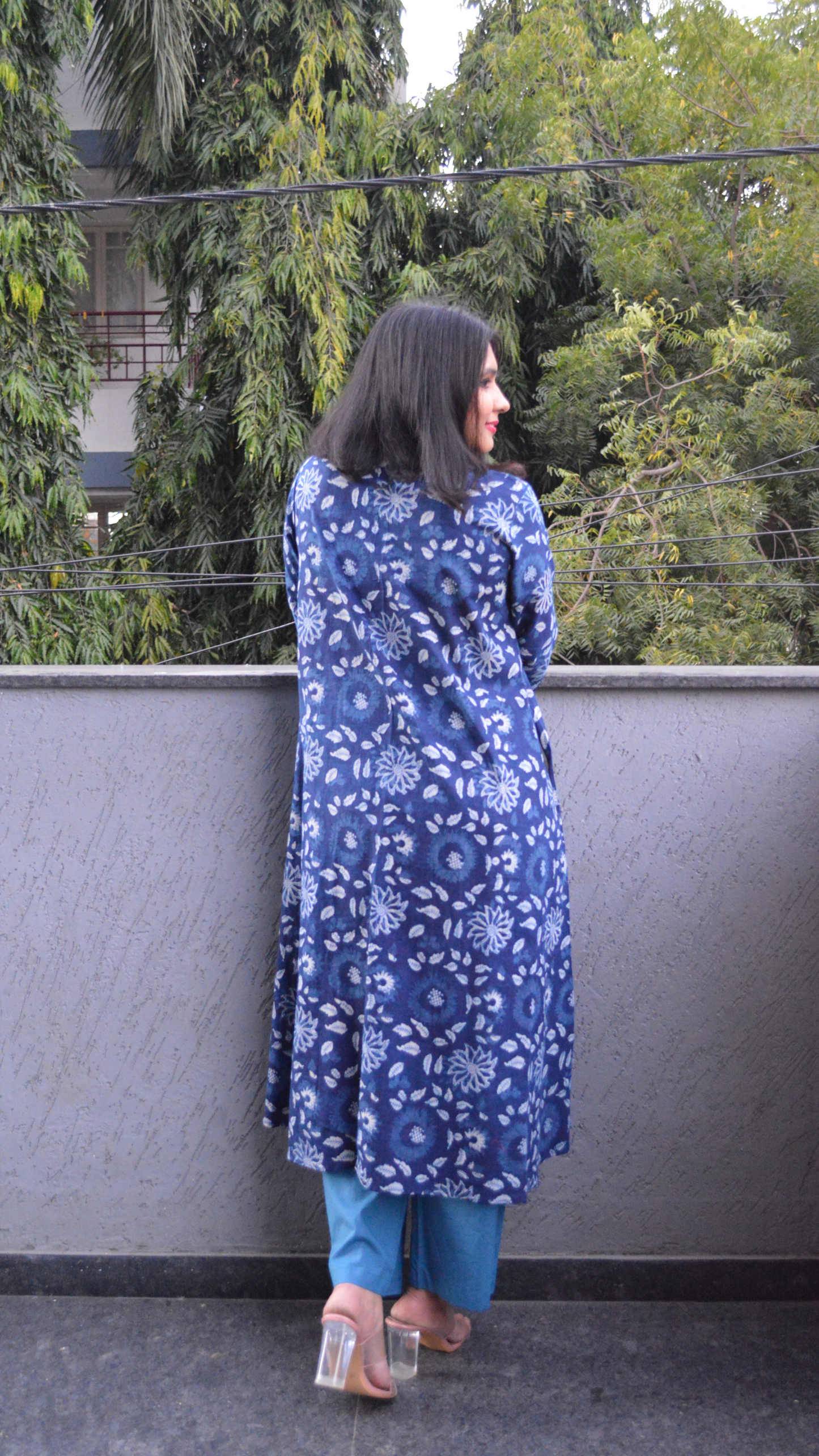 The matching pants are tailored to complement the kurta, offering a balanced, well-coordinated appearance that's both sophisticated and easygoing. Whether you're heading to work, attending a casual gathering, or running errands, this Kalamkari kurta-pant set is designed to offer comfort, style, and convenience. Its rich indigo tone, traditional craftsmanship, and versatile design make it the perfect addition to your wardrobe, providing you with an effortless, chic look for a variety of occasions.