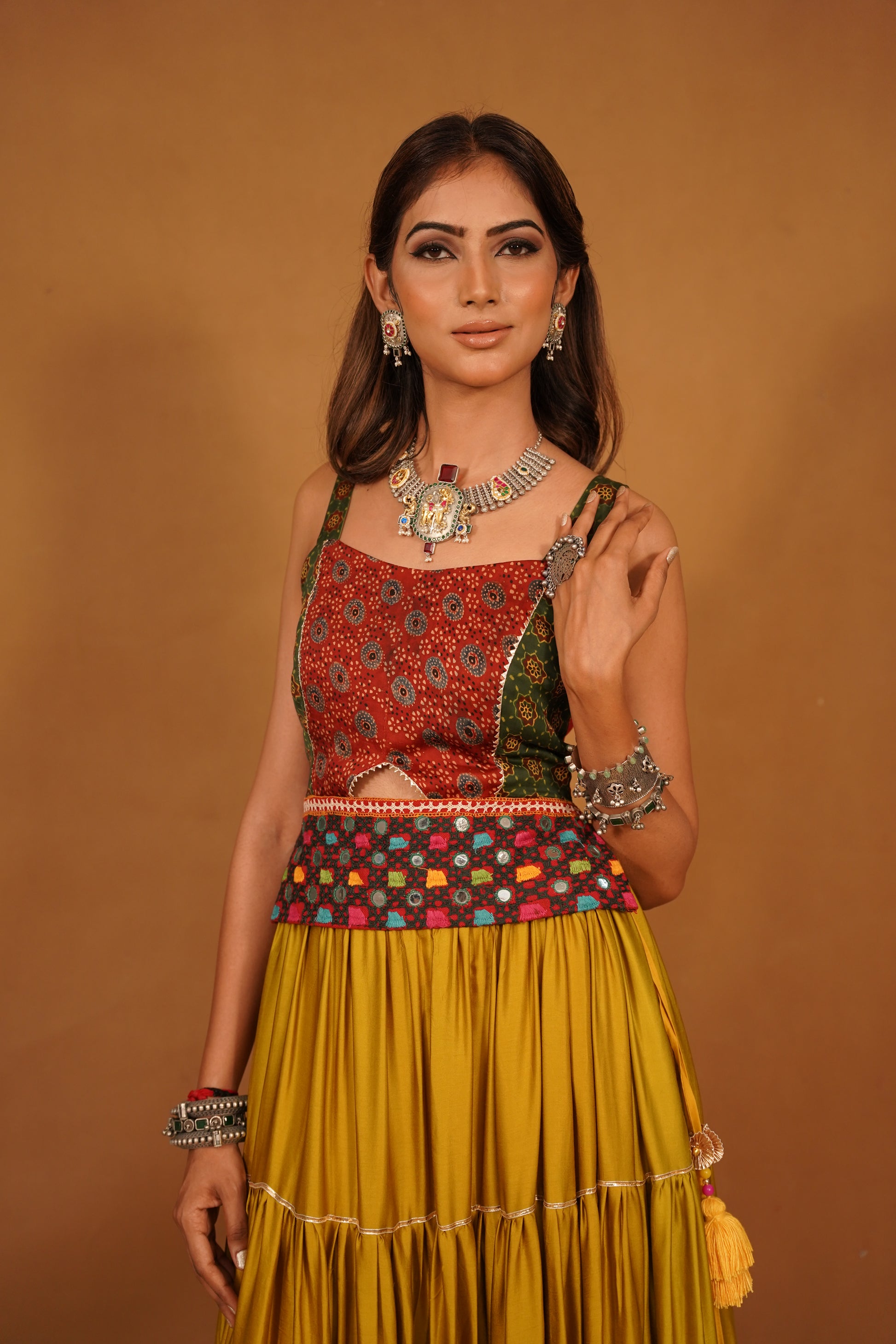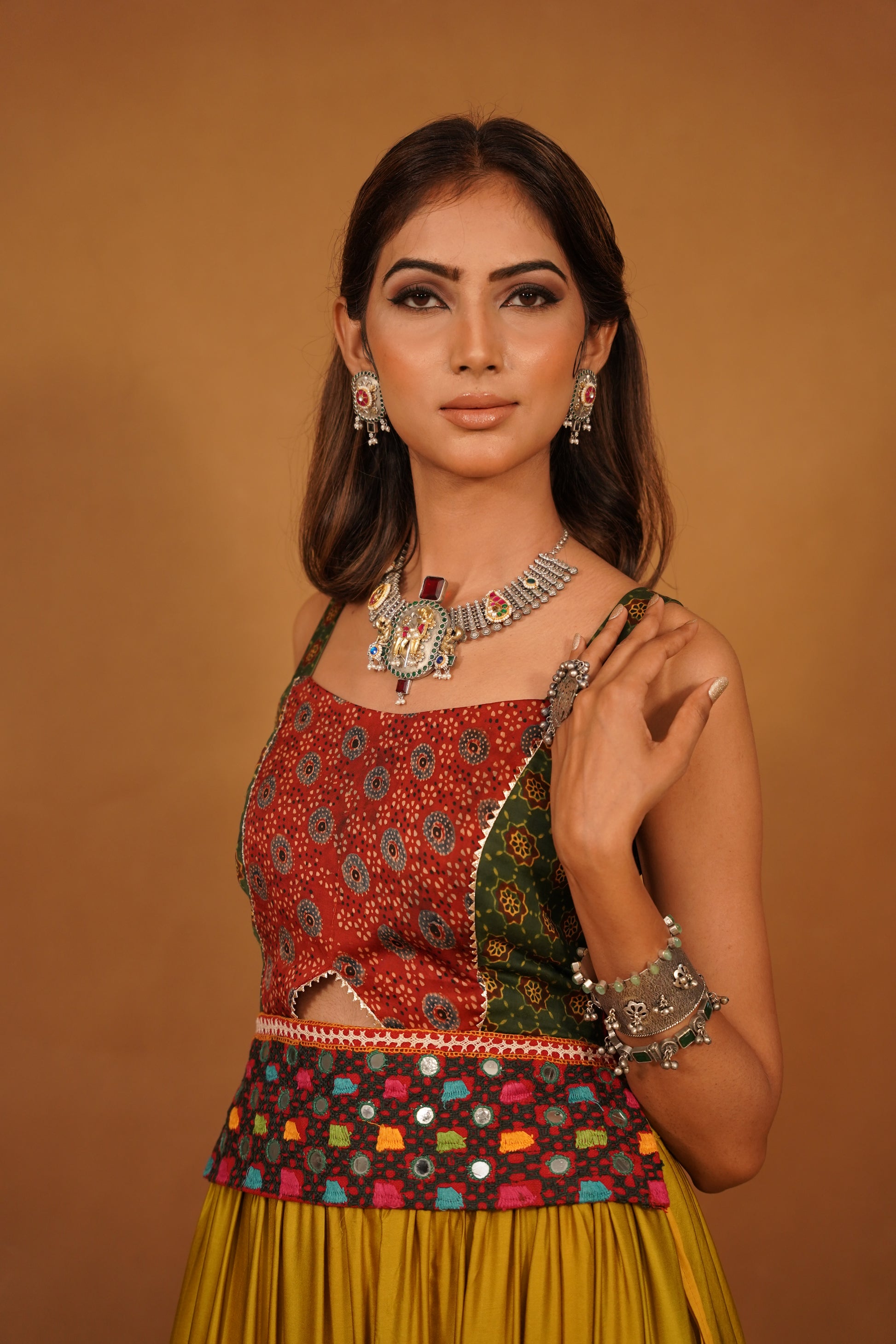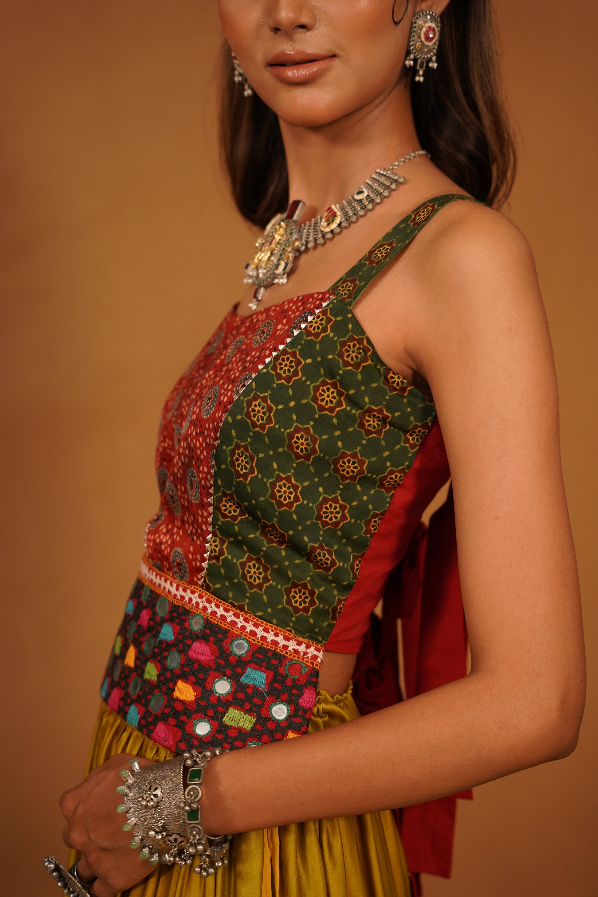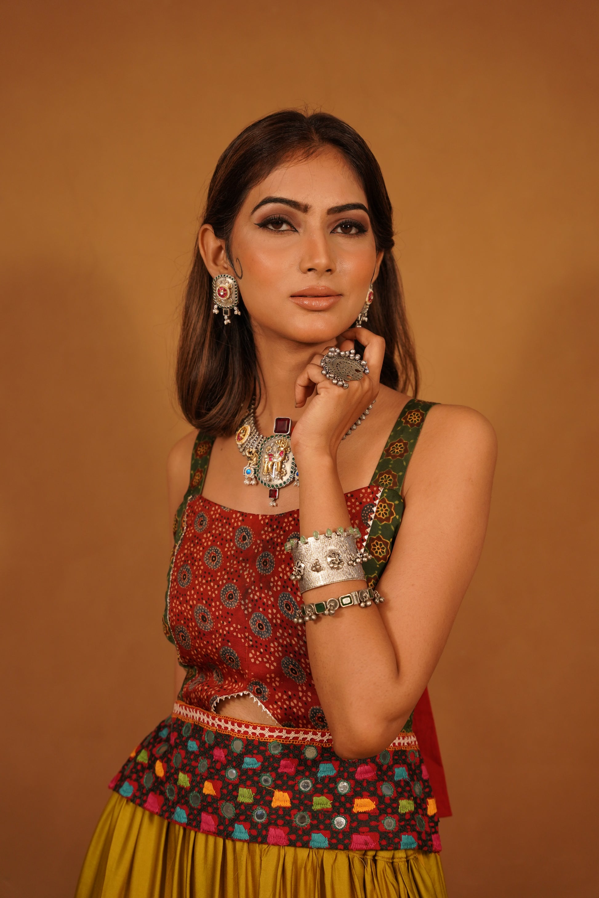 Pair this Ajrakh top with high-waisted jeans, a flowing skirt, or traditional palazzos for a stunning ensemble that celebrates both modern and traditional aesthetics. Perfect for festive occasions, casual outings, or cultural events, this top is a statement piece that showcases your appreciation for artisanal craftsmanship and timeless style. Embrace the beauty of tradition while making a bold fashion statement with this elegant and versatile garment.