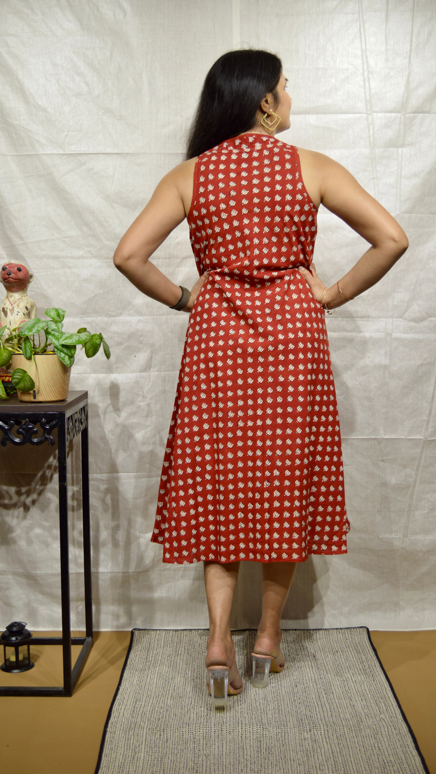 Effortlessly elegant and undeniably comfortable, our Rust Lotus Circular Dress is your perfect summer companion. Made from pure, breathable cotton, this dress features intricate handblock prints that celebrate artisanal craftsmanship.
