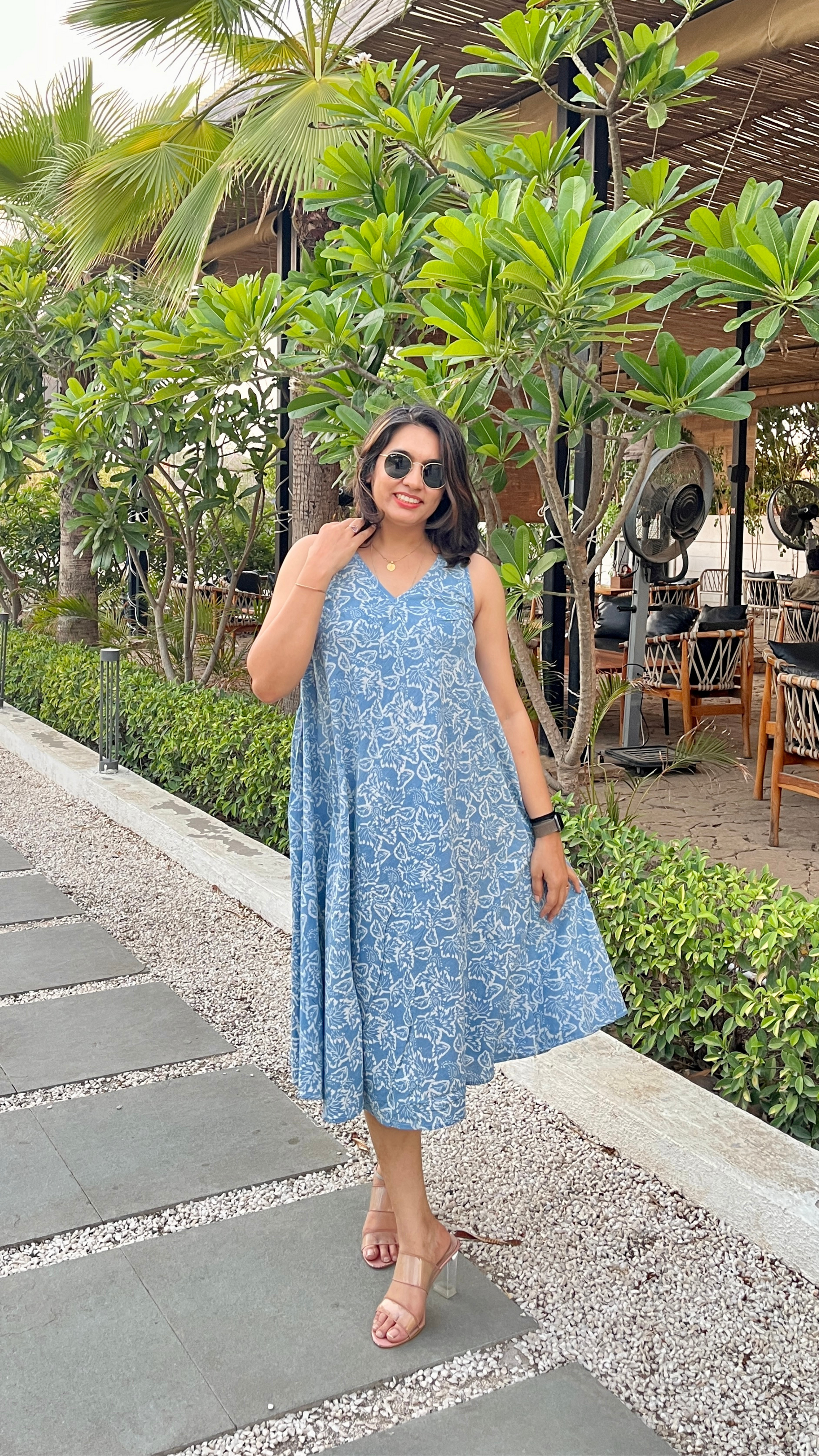 This dress is what soft girl dreams are made of. With its flowy silhouette and breezy 100% cotton fabric, Sunday Skies Circular Dress is your go-to for easy days and main character moments. The powder blue shade with dainty white florals feels like a breath of fresh air — calm, cool, and totally Insta-worthy.