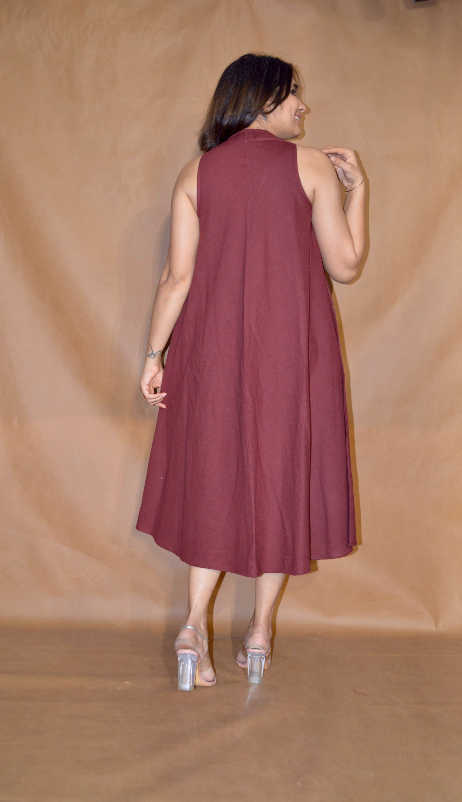 The Wine Ember Circular Dress is designed for women who love effortless silhouettes with a rich presence. Its deep wine tone adds instant depth while the circular flare keeps it fluid, breathable, and beautifully freeing.