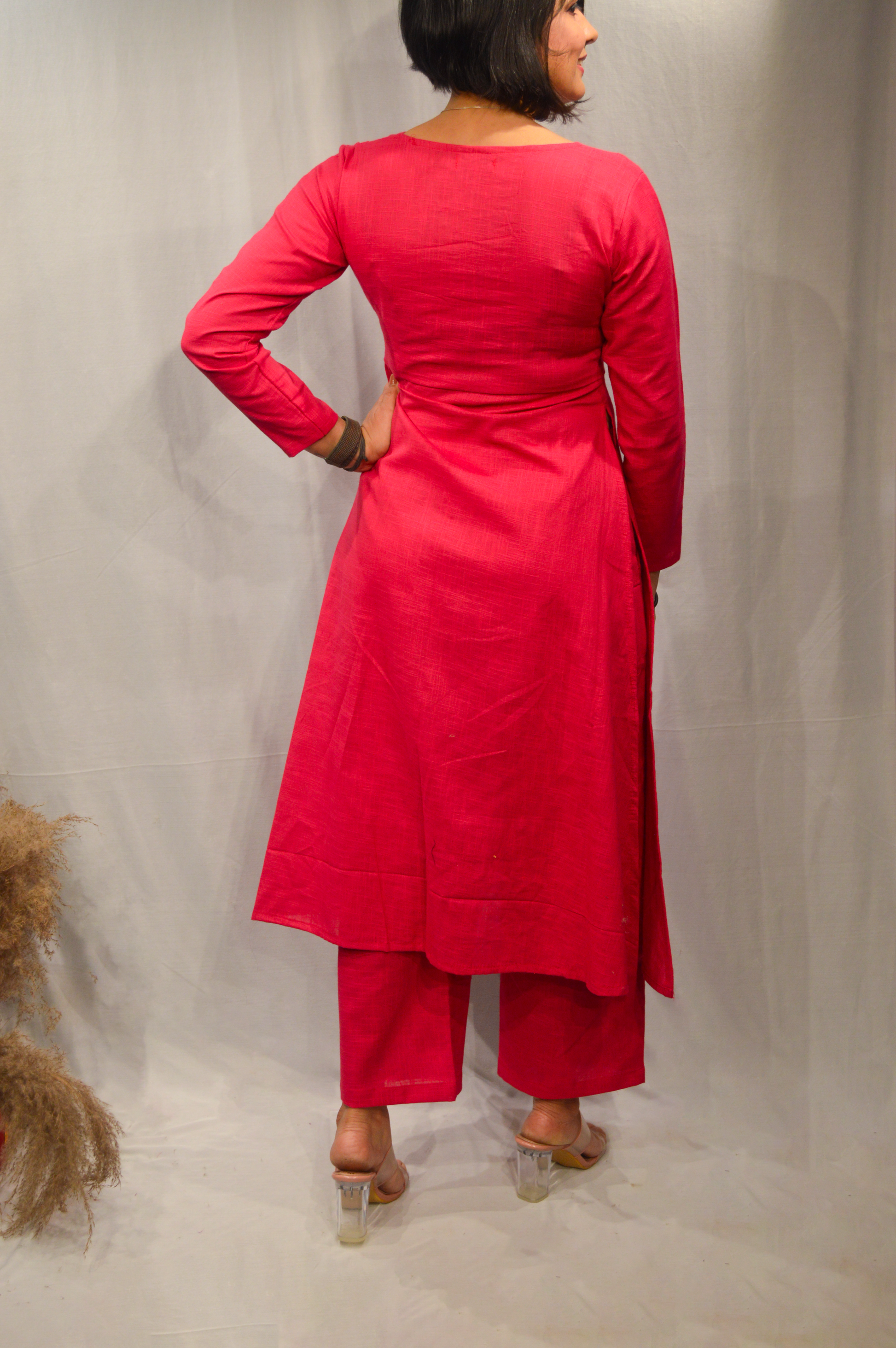 Introducing our Solid Hot Pink Cotton Co-ord Set of Kurta-Culotte-Dupatta.