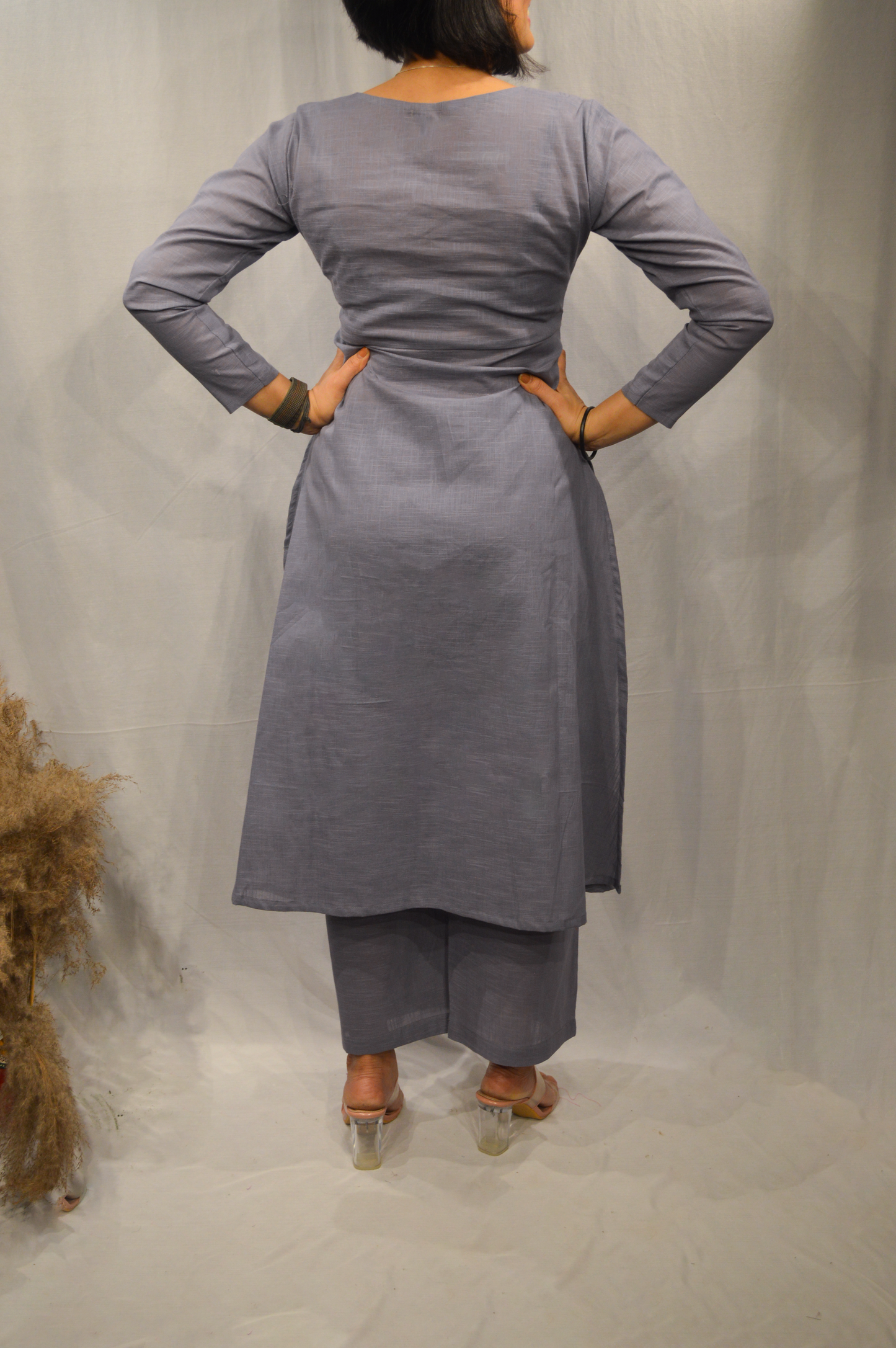 Introducing our Solid Ice grey Cotton Co-ord Set of Kurta-Culotte-Dupatta.